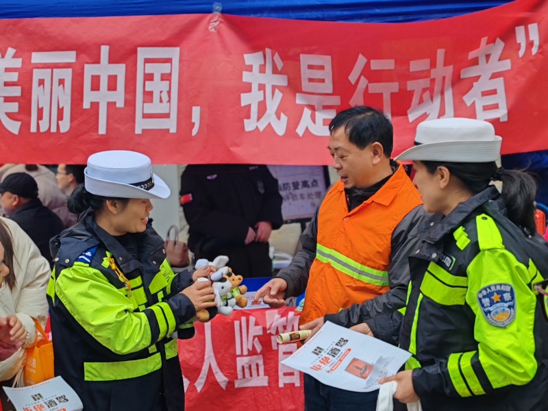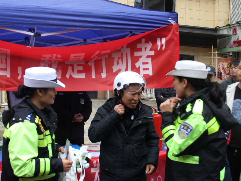 近日,凯里市大十字街道联合市交警队,依托永乐社区睦邻市集人员密集的优势,在凯里市大十字商圈新就业群体党群服务站开展了以“美丽中国,我是行动者”为主题的交通安全宣传教育活动。