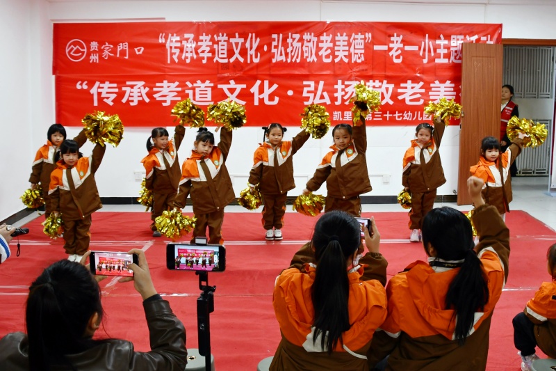 凯里市三十七幼儿园的孩子们表演的节目充满了童真与朝气,赢得台下阵阵掌声;养老服务们老人们的合唱节目歌声嘹亮,传递出积极向上的生活态度。“一老一小”在舞台上相互映衬,构成温馨和谐的画面。