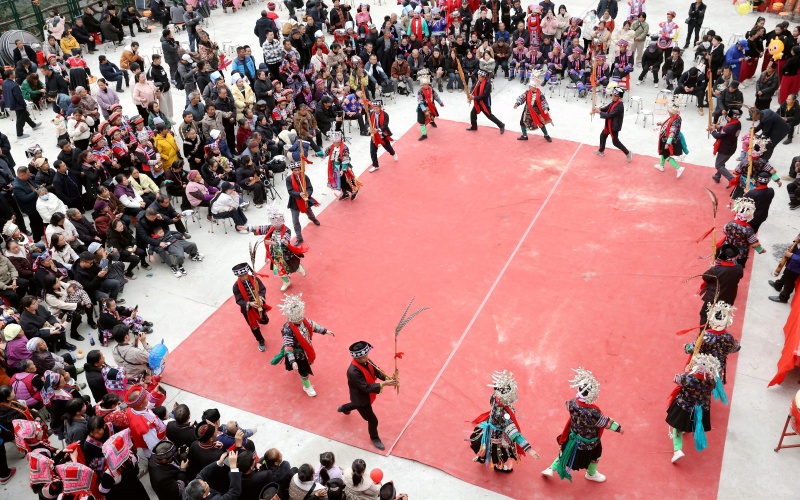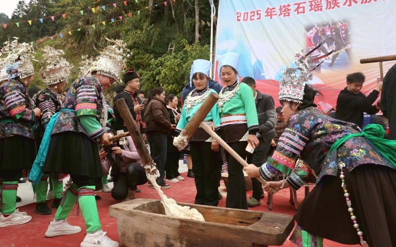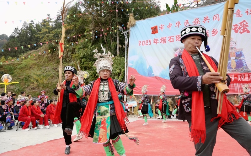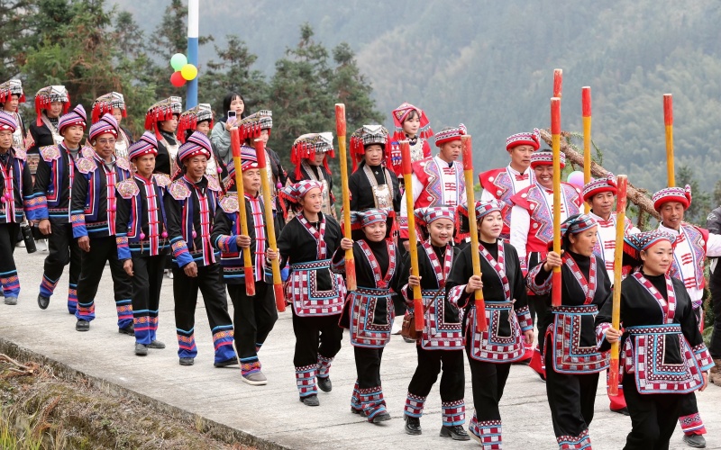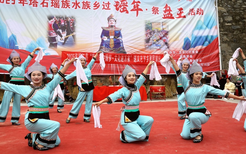 当日,被列入传统村落的榕江县塔石瑶族水族乡怎东村瑶族同胞迎来传统节日“盘王节”,瑶族同胞身着节日盛装,并邀请周边村寨的水族、苗族群众一起,开展民族特色的多彩活动,载歌载舞欢庆“盘王节”。(李长华)