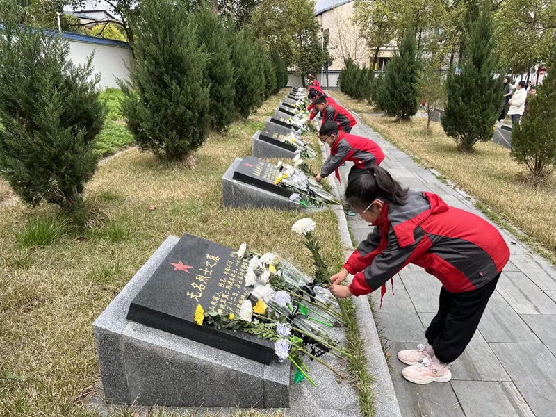 本次活动由学校党支部统筹,关工委、大队部协同策划,办公室负责影像记录与宣传报道。活动前,学校精心准备80枝菊花与祭奠花篮,确保祭扫仪式庄重有序。学校主要负责人表示,通过“校内教育+校外实践+家庭延伸”的三维模式,让清明祭英烈活动既具仪式感又富教育性,真正实现“缅怀先烈育新人”的目标。