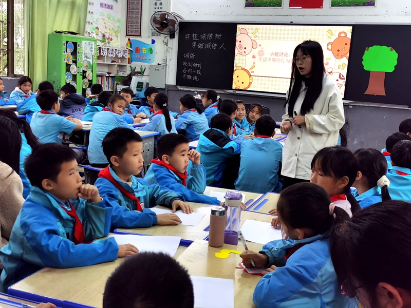 德育示范课上,田思源教师以通过“什么是诚信、生活中的诚信行为及不诚信的行为”三个维度来认识诚信、理解诚信、做诚信人。美育课堂中,贺永吉老师围绕美食的作品赏析、创意实践展开教学,让学生在审美体验中提升人文素养。科学示范课上,杨芳明老师主要以“实验探究促素养,科学课堂重实践”为主题的教研活动。体育示范课上,杨昌媛老师聚焦运动技能提升与团队协作培养,趣味化、规范化的教学模式点燃学生运动热情。劳动教育示范课上,杜刘英老师的课堂则结合生活实践,通过动手操作、成果分享,培育学生劳动观念与实干精神。