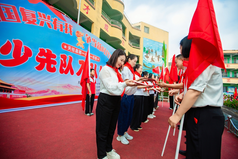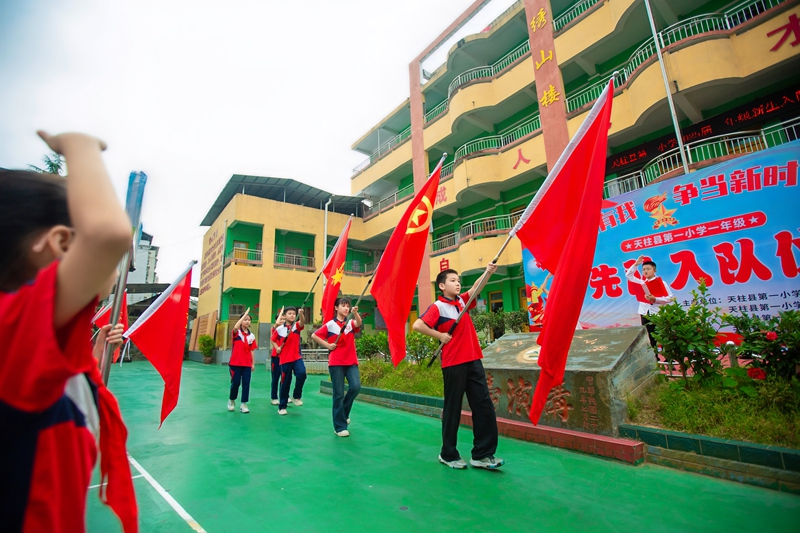 10月13日,在中国少年先锋队建队日来临之际,天柱县第一小学隆重举行“强国复兴有我,争当新时代好少年”主题入队仪式。90名一年级新生在庄严氛围中正式加入中国少年先锋队,成为光荣的少先队员。