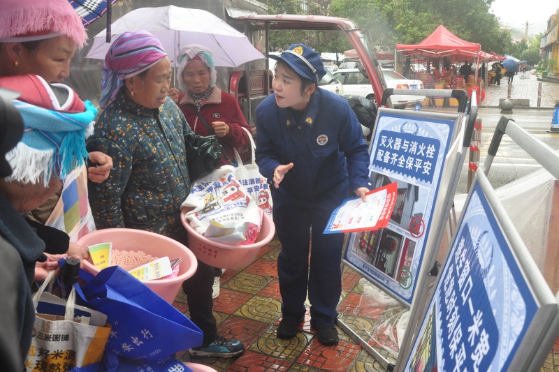 为切实提高居民群众消防安全意识,营造全民关注消防、参与消防的浓厚氛围,11月9日上午,黄平县利用县城关镇赶集日在金凤公司小区门口开展第34个全国消防日集中宣传活动。