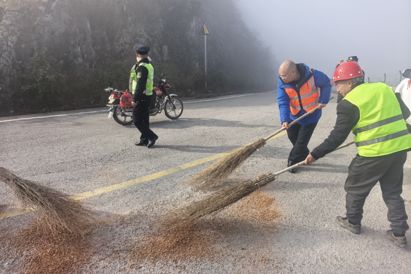 本次演练模拟连续低温导致路段结冰、交通中断的险情。道路巡查人员发现险情后迅速上报,指挥长立即启动应急预案,组织安全科、村镇站、发展中心、建养中心及州执法大队等多部门联动响应。演练中,抢险人员快速布设警示标志与警示锥,抛撒防滑砂与工业盐,高效开展除冰保通作业。整个过程指令清晰、行动有序,历时40分钟,共投入人员18名、车辆4台,消耗防滑砂6方、工业盐1吨,使用警示锥30个、标志牌4块。