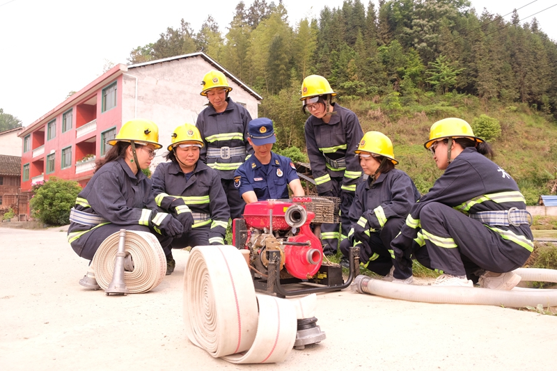 同时木杉村自发组建了一支女子义务消防队,她们放下锄头拿起水枪,成为守护村寨安全的“巾帼铁军”。每周一次又一次的消防演练,精准覆盖到每个自然组,确保在家的群众都能熟练使用消防器材,这支平均年龄不到40岁的女子消防队,成功在一分钟内就能完成从接警到出水的全套操作。