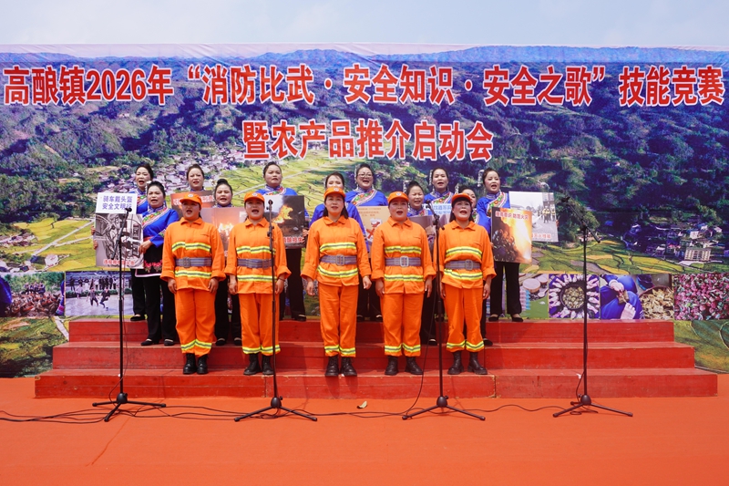 “阳春四月是清明,野外用火要认真。天干物燥易起火,酿成大祸悔莫及……”在黔东南州天柱县高酿镇,侗族飞歌悠扬的歌声在吊脚楼间回荡不歇。随着一声哨响,13支村级义务消防队伍迅速集结,甩水带、接接口、装水枪、开闸放水,整套动作行云流水、一气呵成;不远处的安全知识竞赛现场,各村代表沉着应答,台下村民举手抢答此起彼伏;侗歌台上,身着盛装的侗族同胞用婉转的歌声,将消防安全知识娓娓道来……这是高酿镇2026年安全知识进万家“三个一”系列活动现场,也是该镇以民族文化赋能平安建设、以安全发展护航乡村振兴的一个生动缩影。