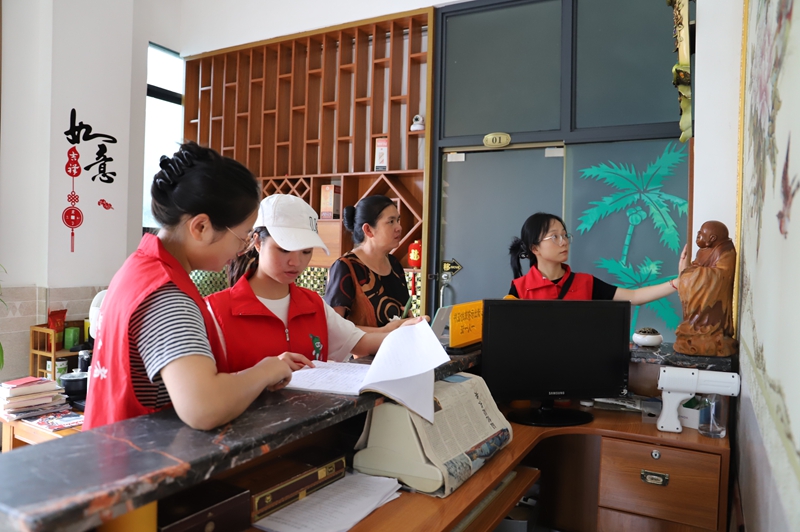 随后,志愿者们走访辖区多家酒店、民宿,对节后住宿登记进行细致查验。青年干部曾万丹认真翻阅入住登记台账,逐条核对身份信息,并说道:“假期虽过,人员流动依然频繁,我们仍要提高警惕,严格落实住宿登记制度,这既是对旅客负责,也是为平安隆里建设增添保障。”