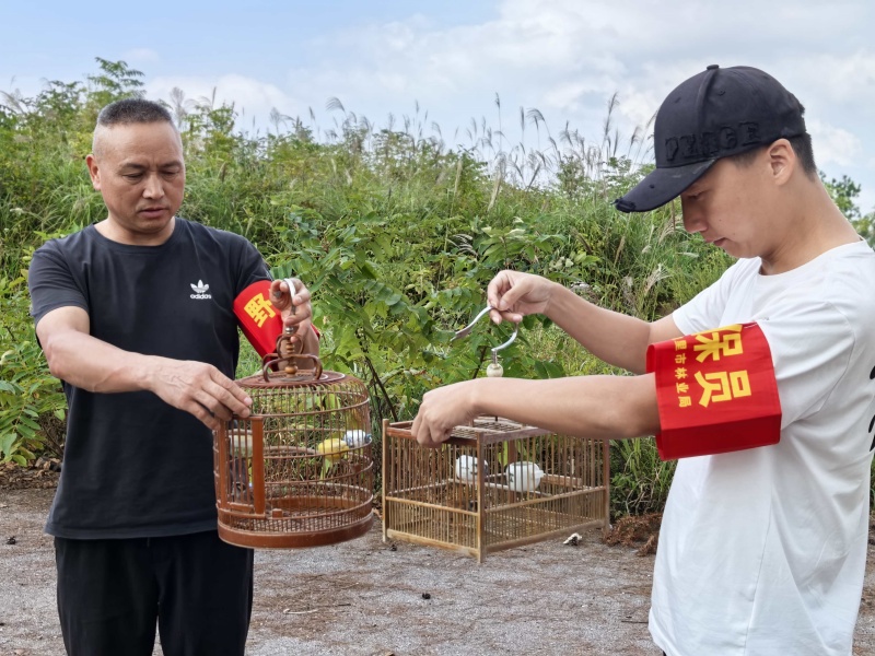 10月12日,凯里市林业局联合市场监管等部门,在“看牛坡”区域开展野生动物鸟类保护专项整治常态化执法行动。行动中,执法人员依法查扣无主鸟笼4件,并解救国家“三有”保护鸟类18只,其中包括三道眉草鹀3只、棕头鸦雀15只。