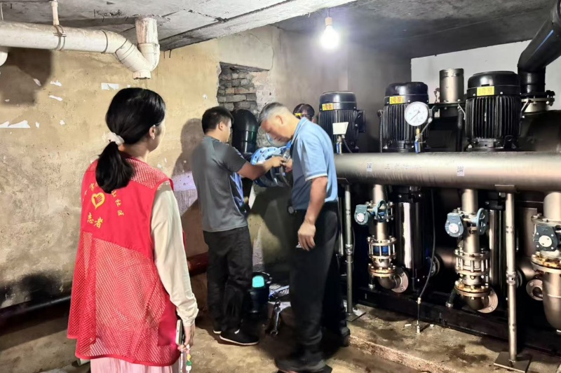 针对多个小区近期频繁停水,严重影响居民日常生活的情况,“社区红管家”组织队员分组实地走访,逐户记录用水异常时段与具体问题表现,并协调专业人员对小区公共供水管道及二次供水设备运行情况进行全面检测。排查发现,有3个小区由于业主未缴纳水费导致自来水公司阶段性供水,4个小区因供水管道老化引发频繁维修及停水。