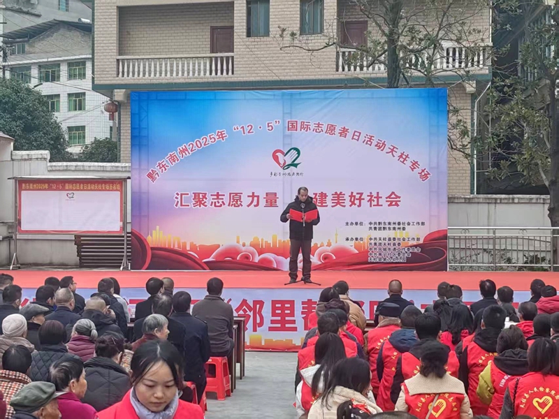 2025年12月5日,以“汇聚志愿力量 共建美好社会”为主题的黔东南州2025年“12·5”国际志愿者日活动天柱专场活动,在凤城街道南门社区居委会院坝温情启幕。活动由中共黔东南州委社会工作部、共青团黔东南州委主办,中共天柱县委社会工作部、共青团天柱县委、凤城街道党工委、天柱县第九幼儿园、南门社区党委等单位联合承办,社区居民、志愿者团队、学生志愿者及热心企事业单位代表齐聚一堂,以志愿之名绘就冬日暖心画卷。