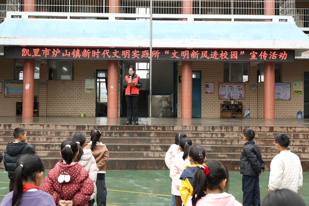 为进一步引导炉山青少年树立正确价值观念,养成文明、健康、安全的行为习惯,自觉抵制网络不良信息,营造清朗绿色的校园环境,2026年3月27日,炉山镇新时代文明实践所走进炉山小学,开展以“文明新风润校园,争做时代好少年”为主题的文明新风宣讲活动,全校小学生积极参与。