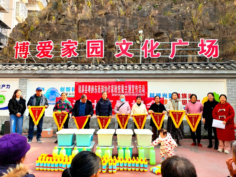 为进一步提升农村家庭环境卫生整治水平,引导广大家庭树立健康文明生活理念,以家庭“小美”助力乡村“大美”。12月9日,锦屏县妇联联合锦屏县黔灵女家政服务有限公司在三江镇排洞社区开展“卫生家庭·巾帼助力”家政技能主题宣传活动,活动共覆盖社区群众60余人。