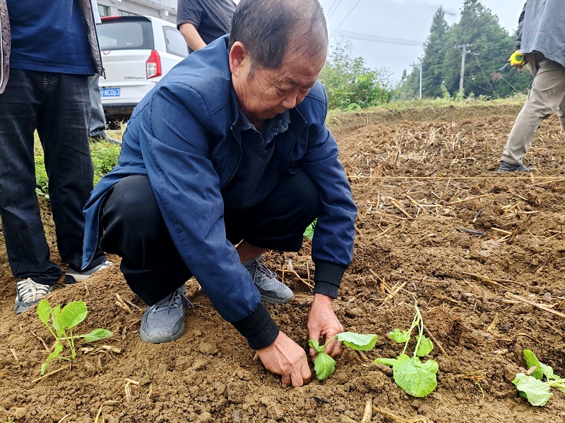 培训会上,该镇农业农村综合服务中心农技人员王勇强结合实际,用“农家话”把品种推荐和种子处理、育苗移栽、种植密度、施肥管理、病虫防控等环节技术进行逐一拆解,确保农户听得懂、记得住。理论讲解结束后,市农业农村局高级农艺师张卫书深入田间,拿起农具蹲下身子,现场演示油菜移栽操作。农户们围拢在其身边,听得认真、看得专注,有的拿出手机拍摄记录关键步骤,遇到不懂的问题当场提问,农技人员耐心解答,现场学习氛围浓厚。
